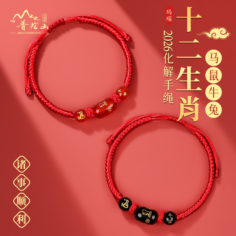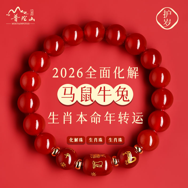 普陀山马年本命年手链红玛瑙太岁水晶手串生肖鼠吉祥佩戴物护身符