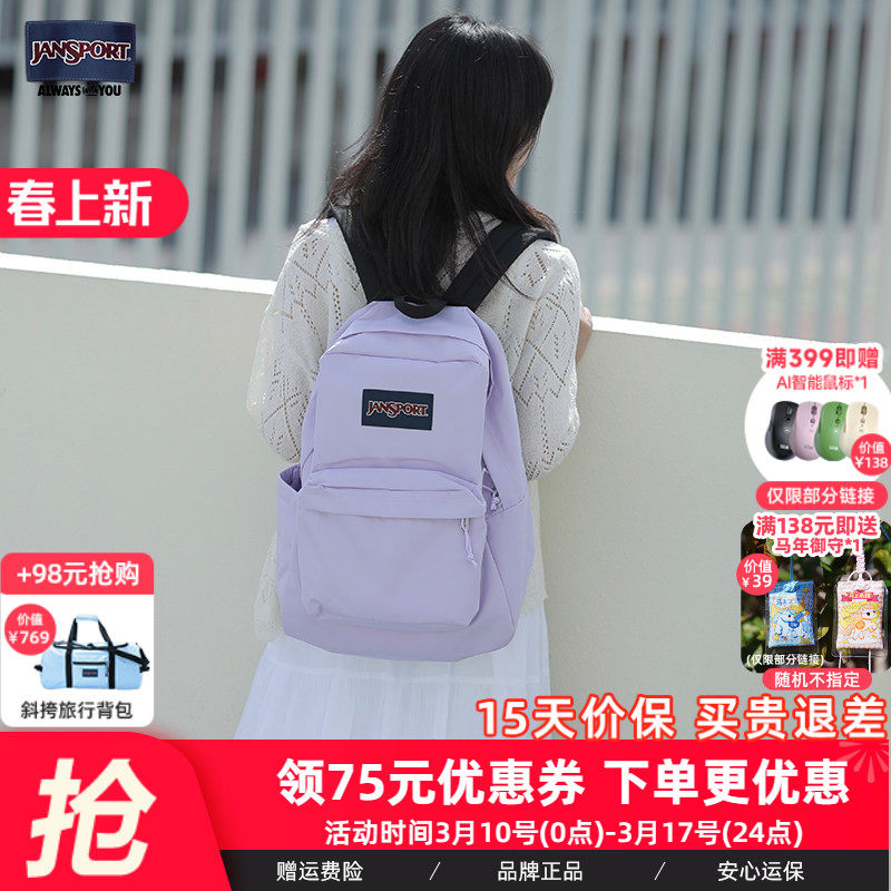 JanSport欧若风新款暮山紫/鸢尾紫学生双肩背包轻便通勤电脑包