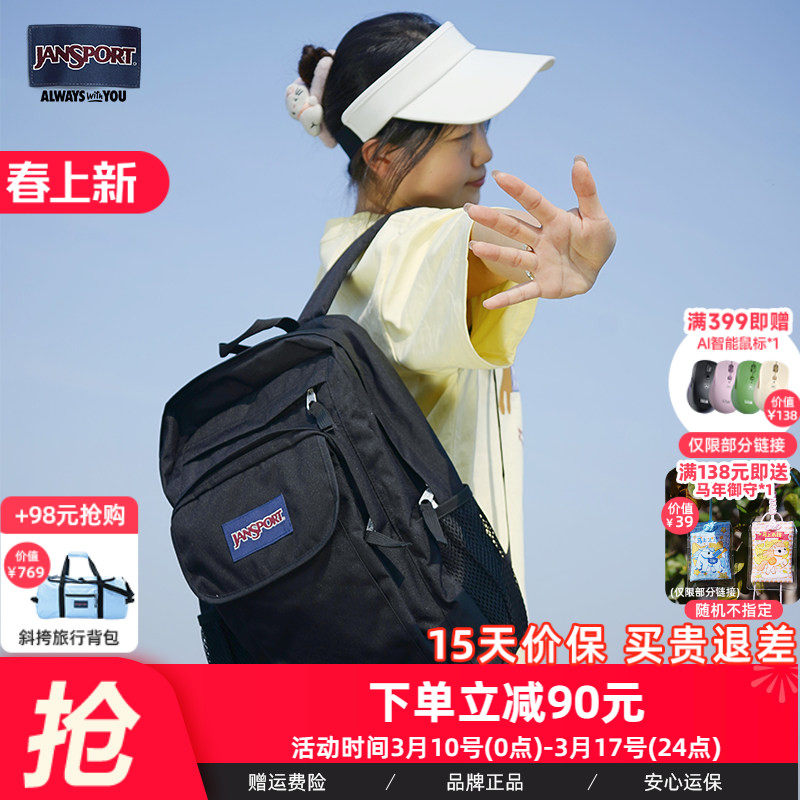JanSport初中学生书包女双肩背包通勤户外旅行大容量男士电脑背包