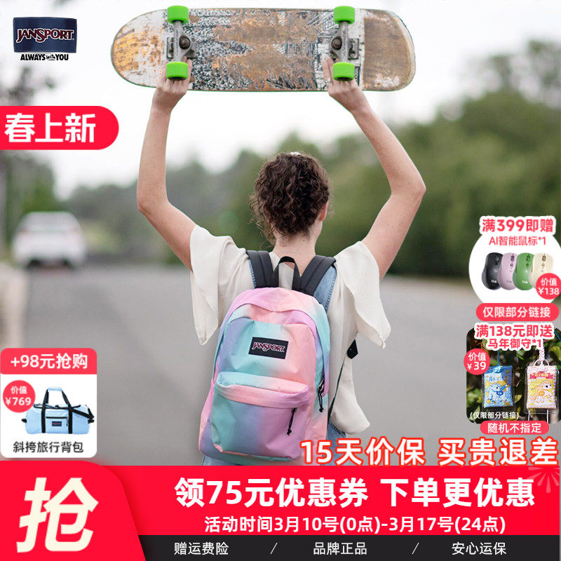 JanSport旗舰店印花集合女书包男高中双肩背包轻便户外通勤电脑包