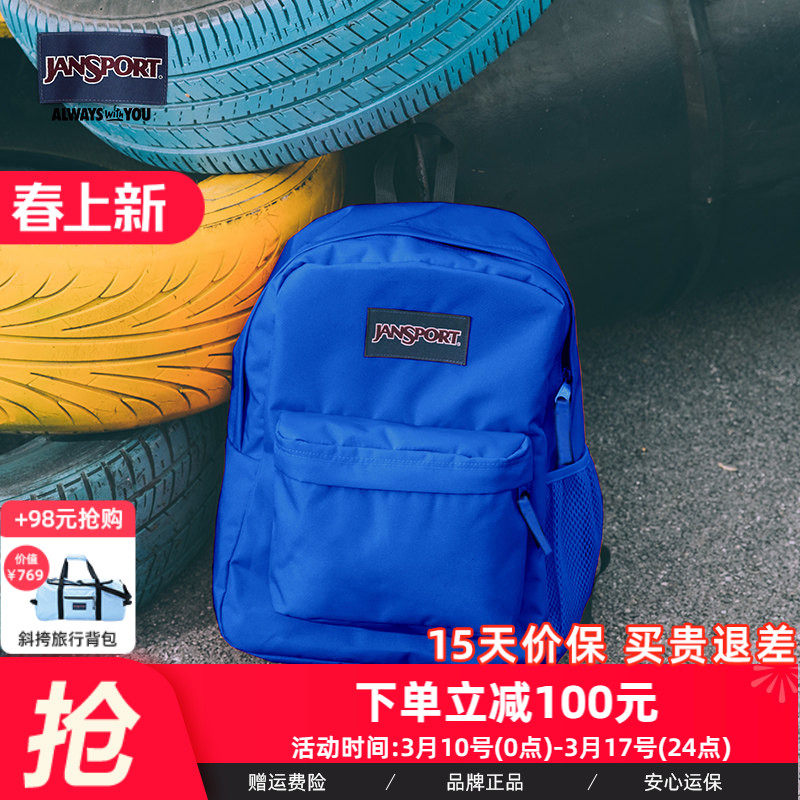JanSport旗舰店克莱因蓝双肩背包大学生女高中轻便旅行通勤电脑包