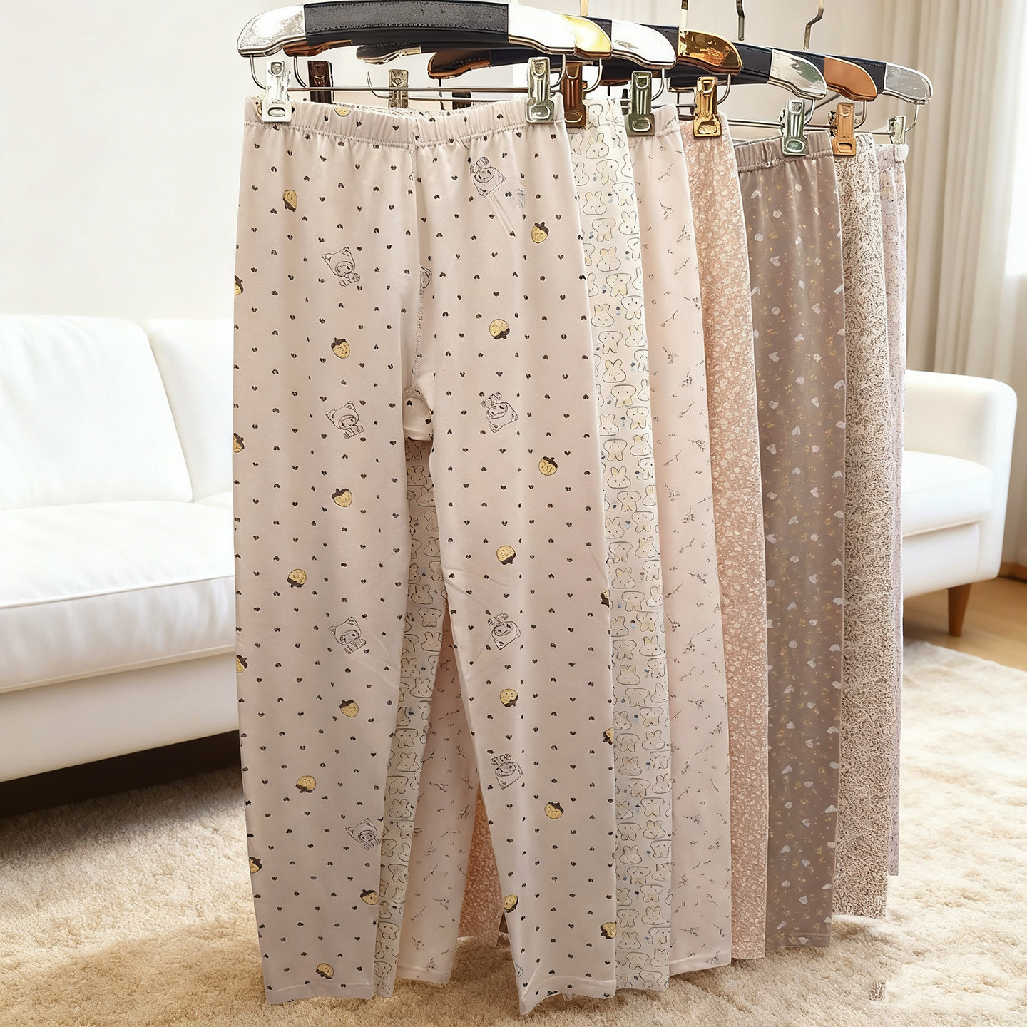 纯色简约高腰睡裤女士春秋季纯棉莱卡棉打底裤保暖裤修身衬裤秋裤