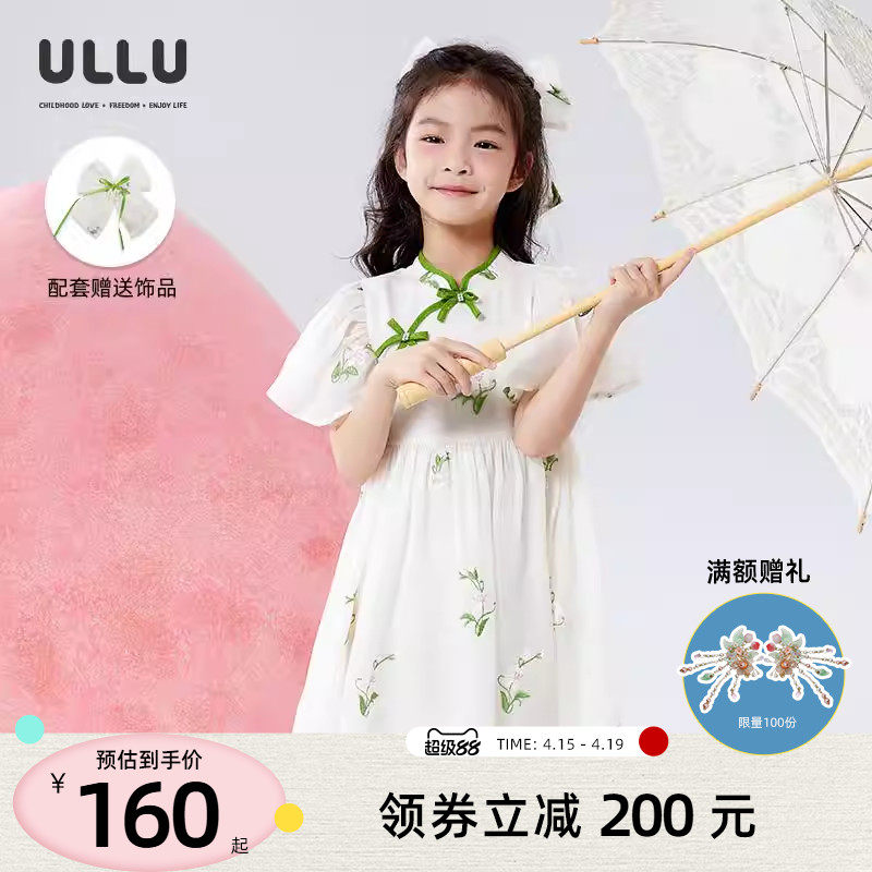 优露童装女童国风连衣裙ULLU25夏款新中式斜襟欧根纱绣花公主裙