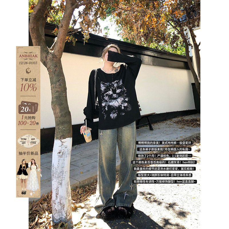 - 宽松牛仔裤女
