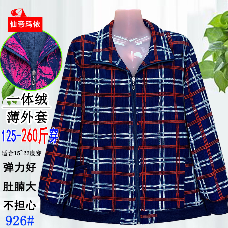 中老年女装大码胖妈妈衫春秋薄绒加厚格子外套加肥加大200斤胖太