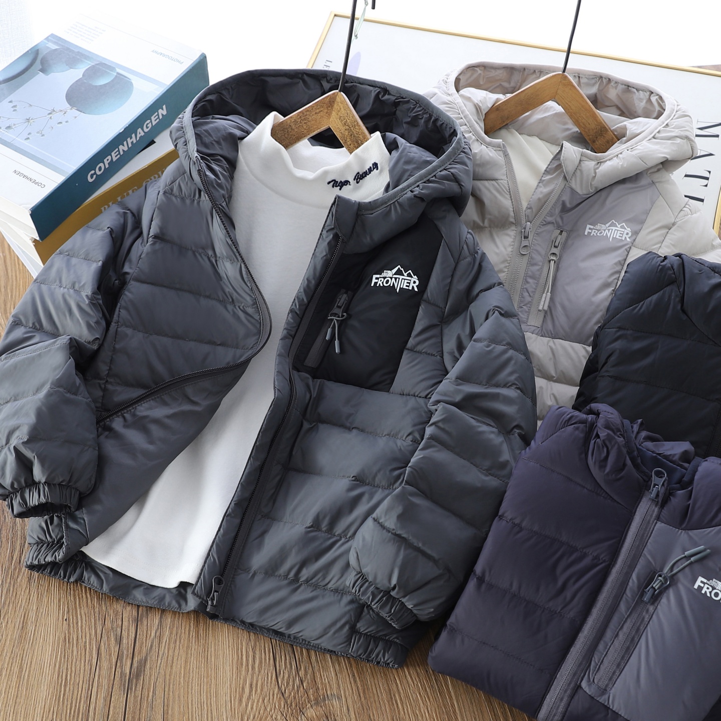 男童轻薄连帽羽绒服2025冬季儿童百搭白鸭绒外套中大童90%绒上衣