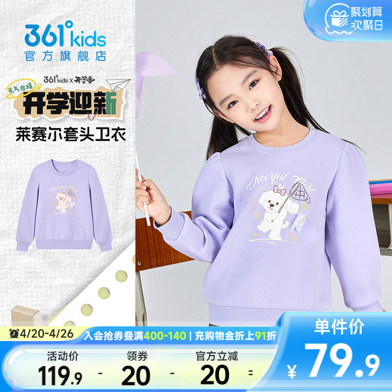 361°童装女童休闲运动套头卫衣2026春新款小童印花宽松百搭上衣