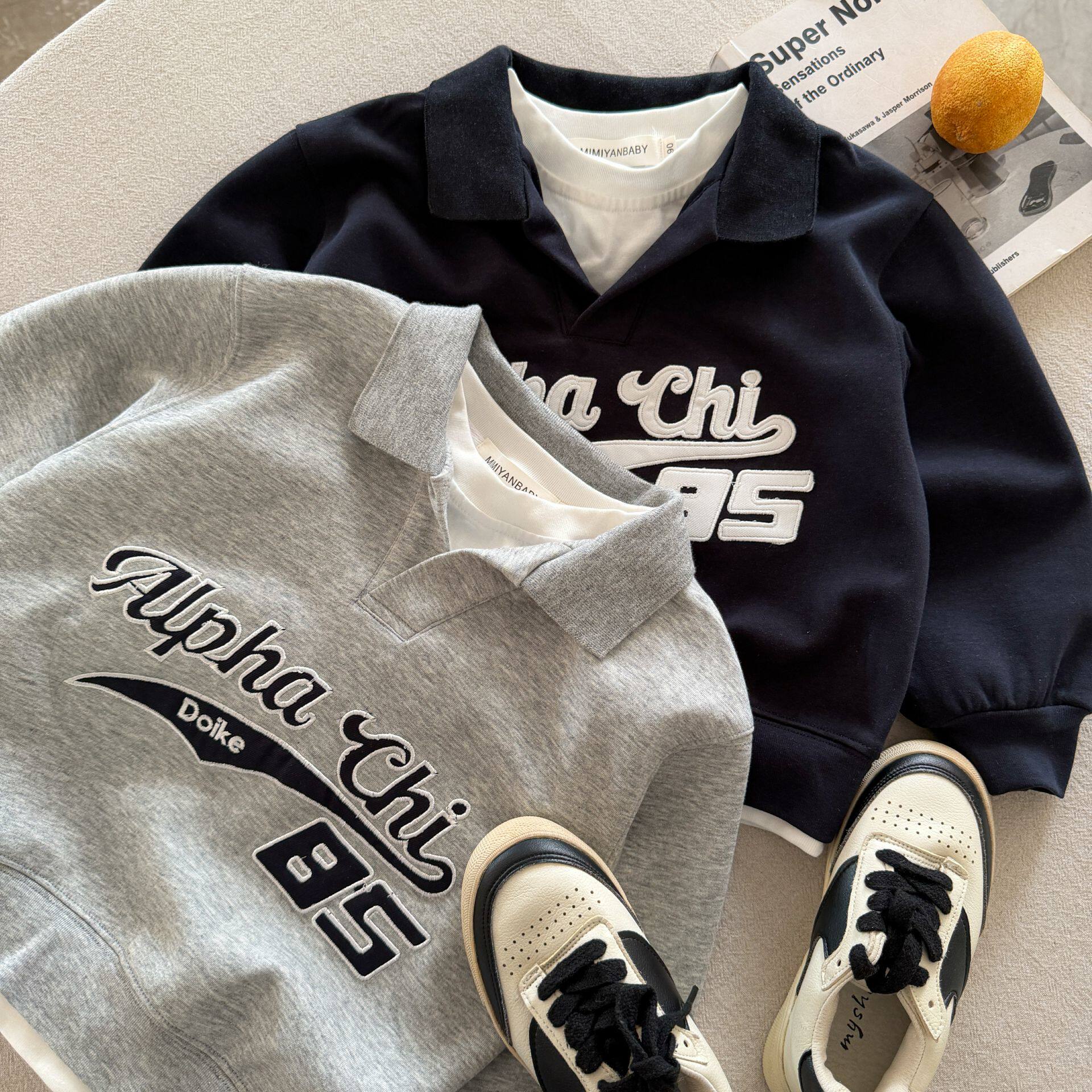 儿童春季卫衣男韩版新款小童字母上衣半开襟宝宝假两件T恤女洋气