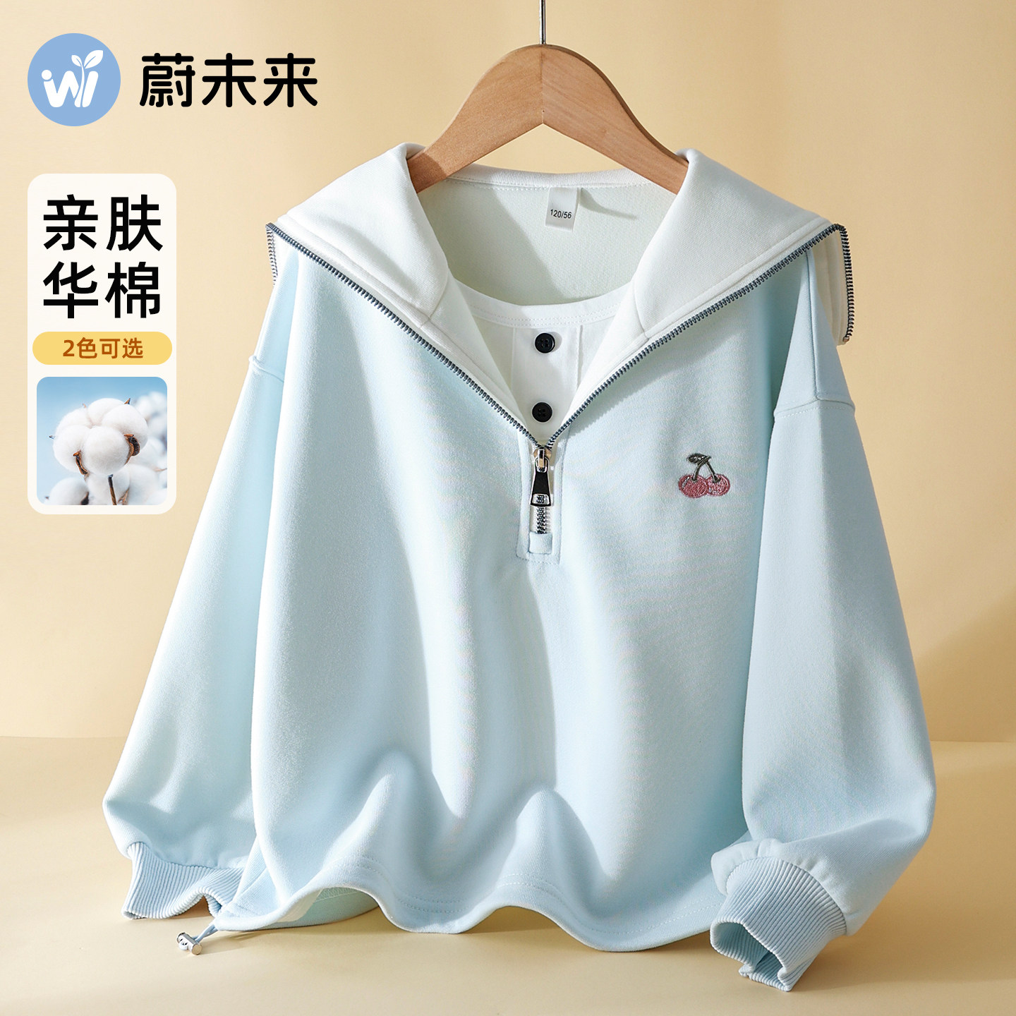 蔚未来女童卫衣春装2026新款童装儿童海军领上衣小学生条纹假两件