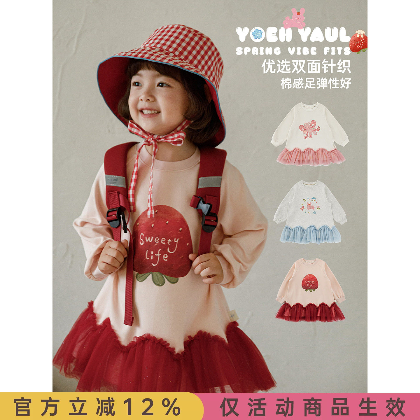 幼悠女童2026春秋新款卡通双面针织卫衣时尚韩系小仙女网纱卫衣裙