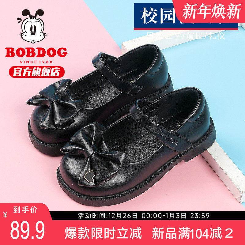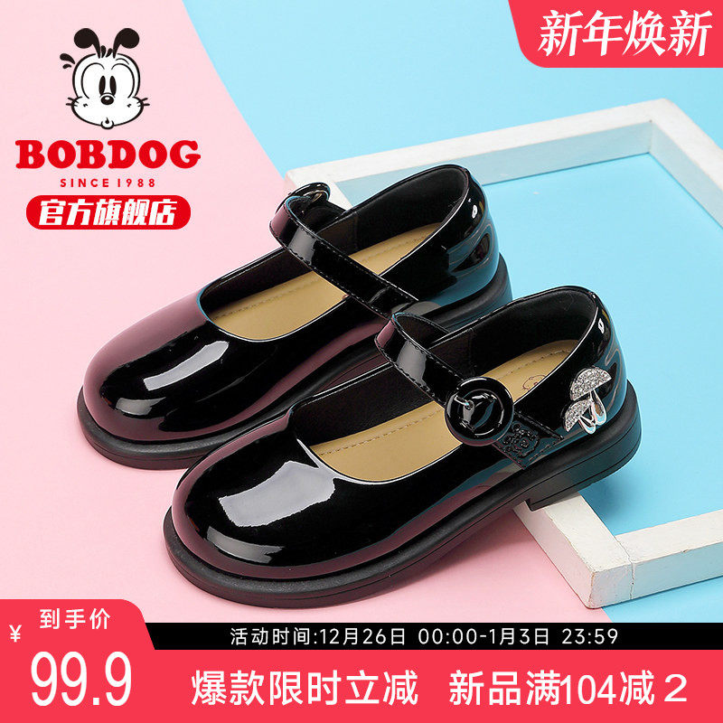 巴布豆童鞋官方旗舰店女童鞋子春款鞋款黑色小皮鞋软底儿童公主鞋
