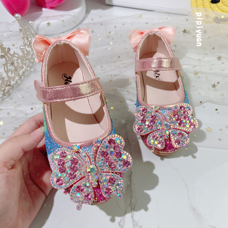 女童鞋子春款2026新款宝宝蝴蝶水晶公主鞋儿童小女孩单鞋女宝皮鞋
