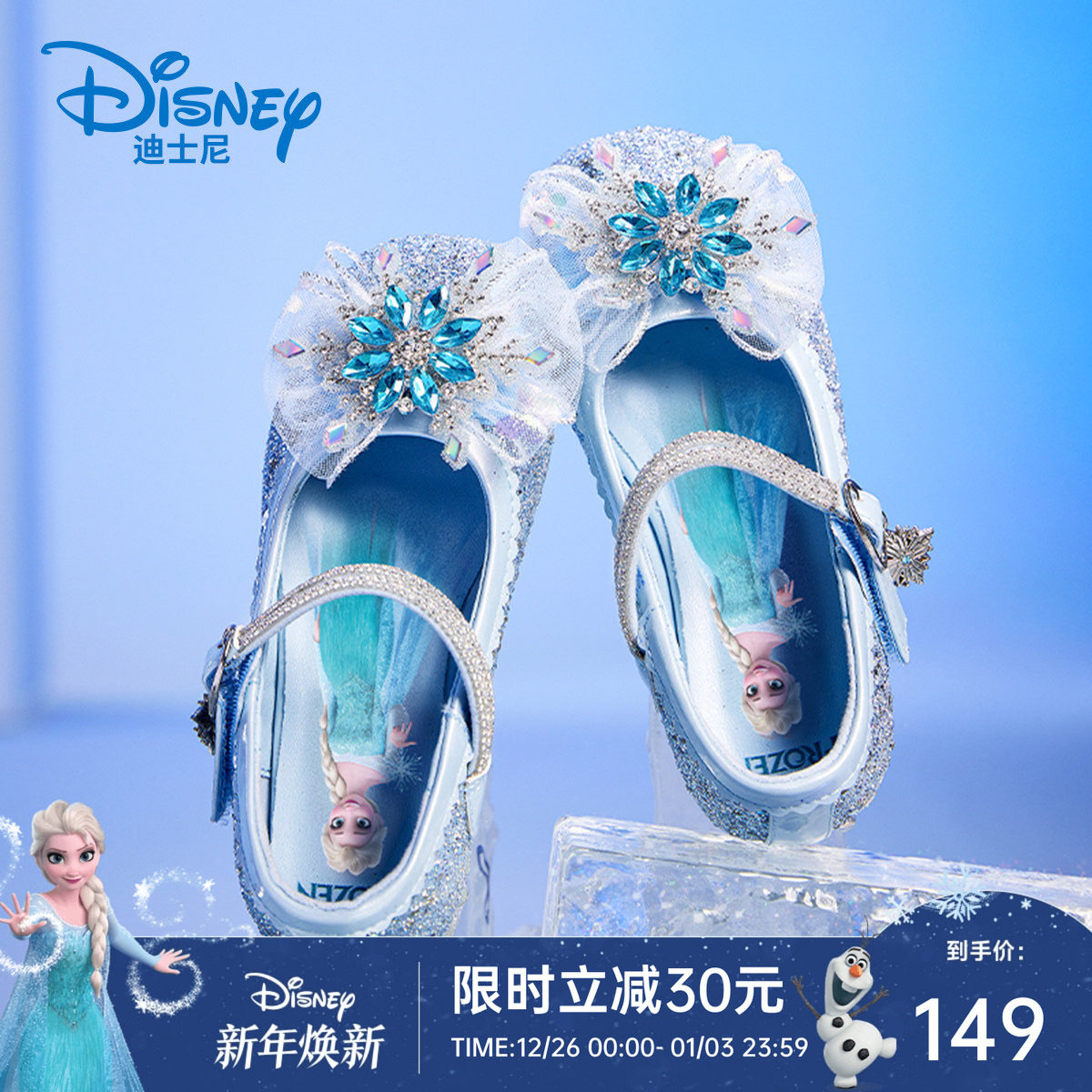 迪士尼冰雪奇缘艾莎公主女童水晶鞋2025春款儿童软底皮鞋表演鞋子