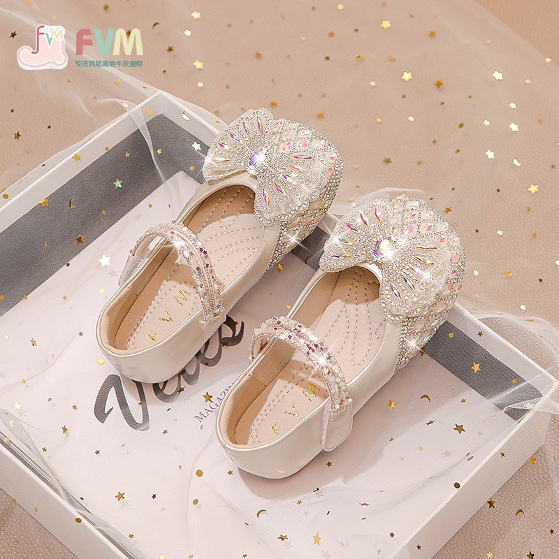 女童鞋子儿童公主鞋2025新款春款小女孩水晶皮鞋水钻闪亮夏季单鞋