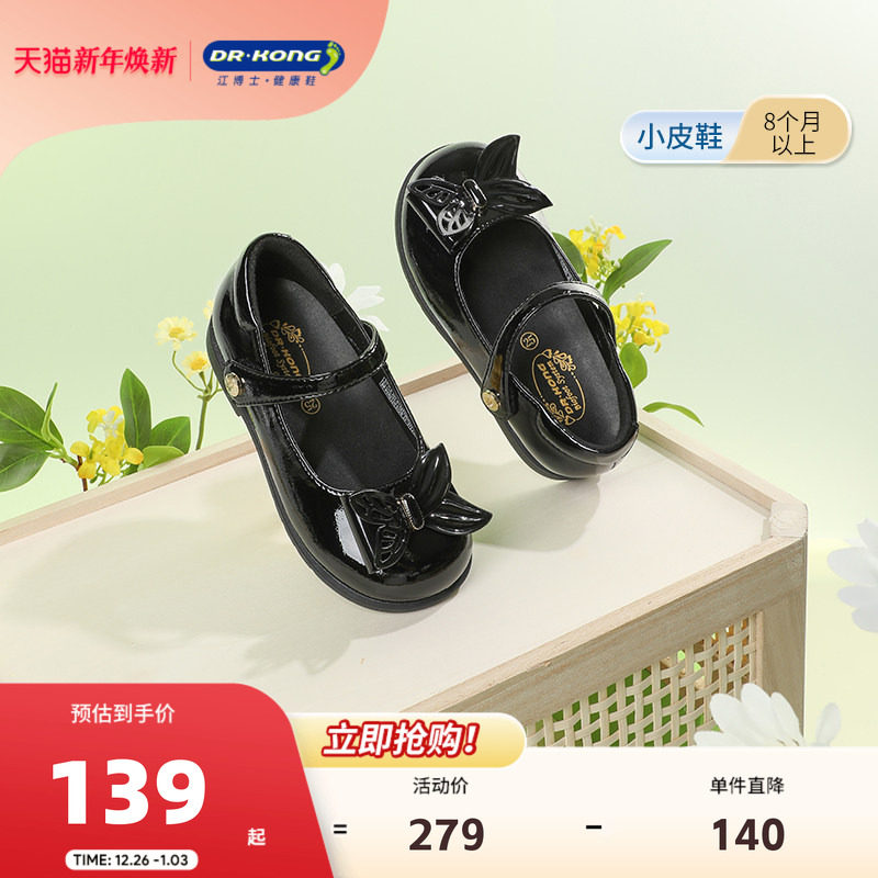 慕葵家韩国童鞋25春款女童洋气公主鞋软底宝宝单鞋蝴蝶结小皮鞋