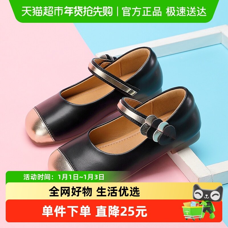 巴布豆童鞋儿童黑色皮鞋2025新款春款鞋小女孩软底公主鞋女童鞋子