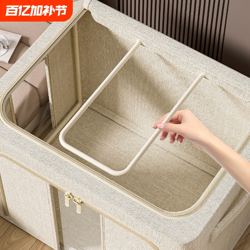 天山棉麻衣服收纳箱家用加厚衣柜衣物分层整理盒装被子储物神器筐