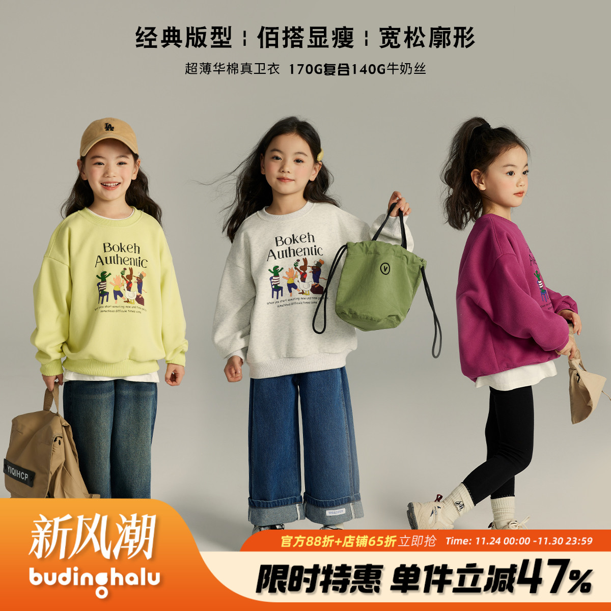布丁哈鲁春装女童2025春秋季新款儿童上衣卡通圆领洋气女大童卫衣