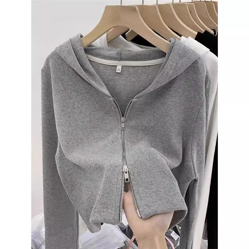 女童短款长袖T恤春装2025新款大童洋气连帽衫春秋儿童上衣打底衫