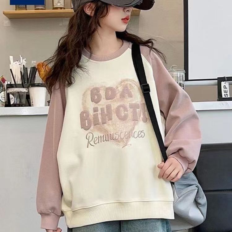 女童卫衣秋冬2025新款假两件拼接衣服春装刺绣卡通女大童加绒上衣