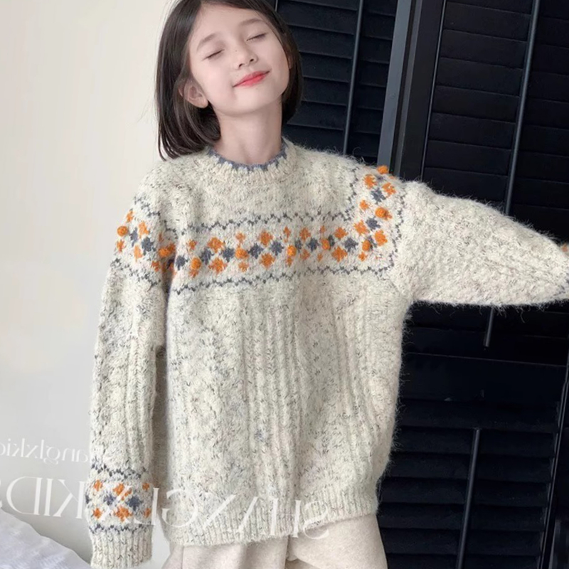 女童毛衣春秋2025新款儿童女款女大童春装上衣女孩费尔岛洋气童装