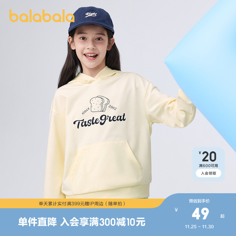 巴拉巴拉儿童卫衣男童女童打底衫春装2025新款童装中大童宝宝上衣