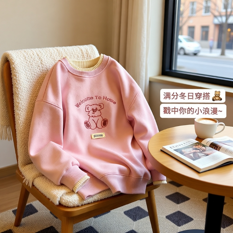 拉夏贝尔卫衣女童春秋2025新款儿童长袖秋冬加绒大童女孩春装上衣