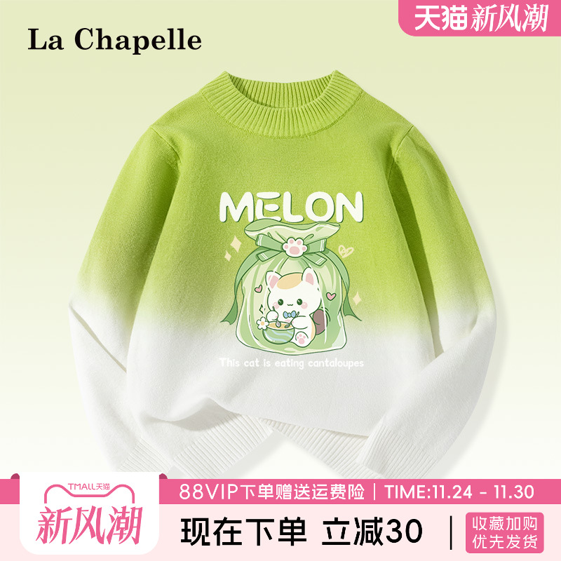 拉夏贝尔女童春装毛衣2025新款女大童绿色渐变上衣儿童秋冬针织衫