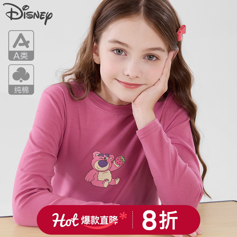迪士尼女童长袖T恤春装25儿童打底衫春夏女孩中大童洋气上衣童装