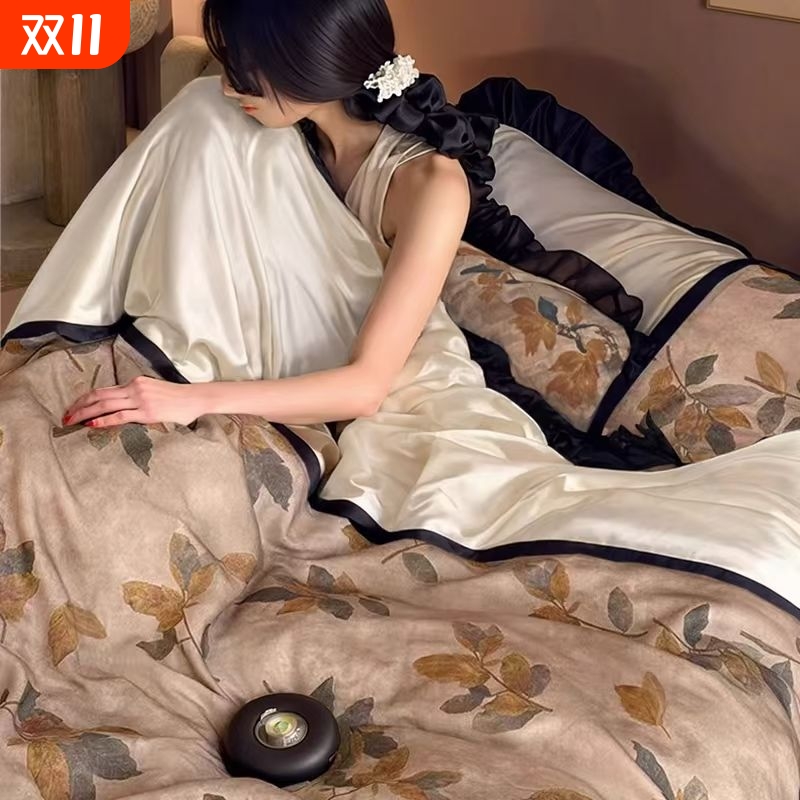 轻奢公主风冰丝四件套少女心真丝滑凉感被套天丝裸睡床单床上用品