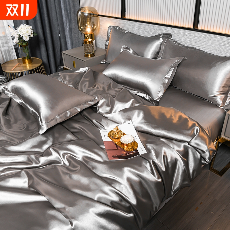夏天冰丝四件套丝滑裸睡高级感水洗真丝床单被套床笠夏季床上用品