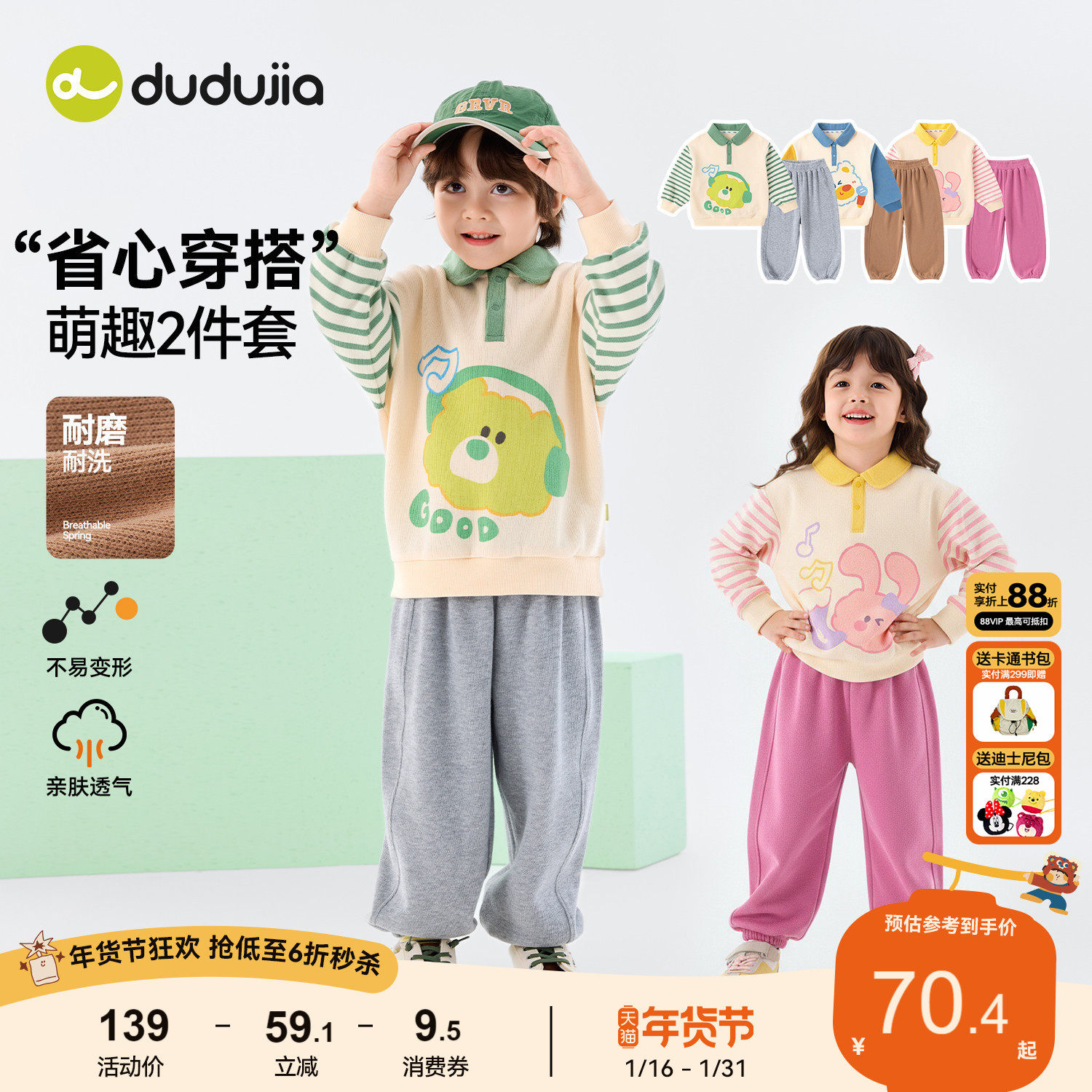 嘟嘟家男童套装春季儿童卡通卫衣裤子女童上衣长裤宝宝童装春款潮