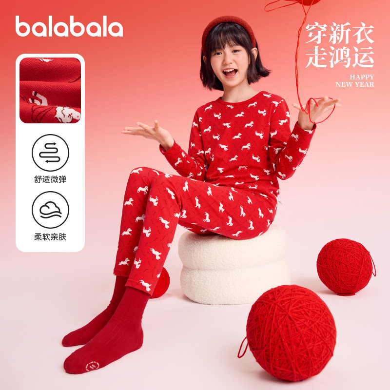 巴拉巴拉女童内衣套装大童秋衣秋裤儿童睡衣马年2026红色本命年潮