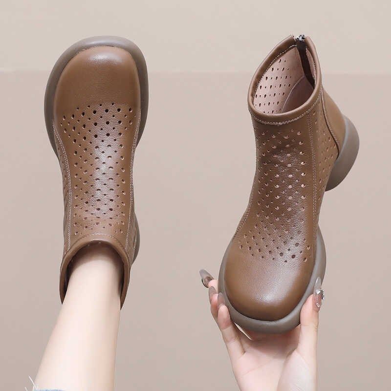 手工真皮洞洞鞋复古休闲厚底镂空短靴女凉鞋牛皮凉靴夏季新款女靴