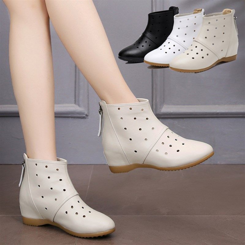 内增高女鞋中跟镂空靴子夏女靴春秋款马丁靴真皮平底短靴坡跟单靴