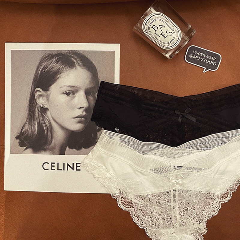 法式蕾丝性感纯欲情趣浪漫丁字裤辣妹透明少女欧美蝴蝶结网纱内裤