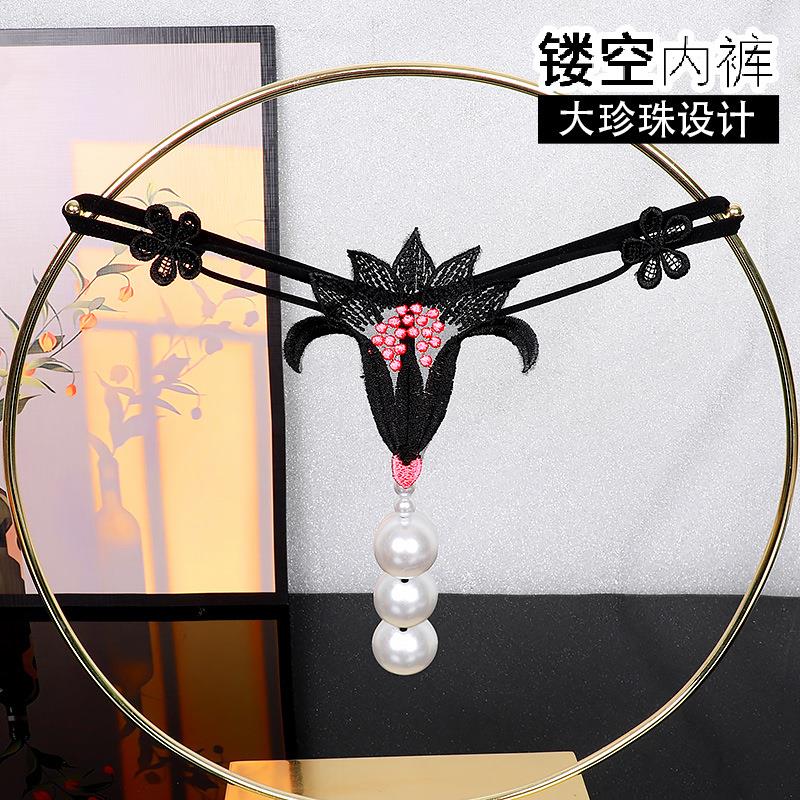 性感勾人丁字裤女士高级蕾丝超级低腰t裤情趣型火辣珍珠按摩内裤