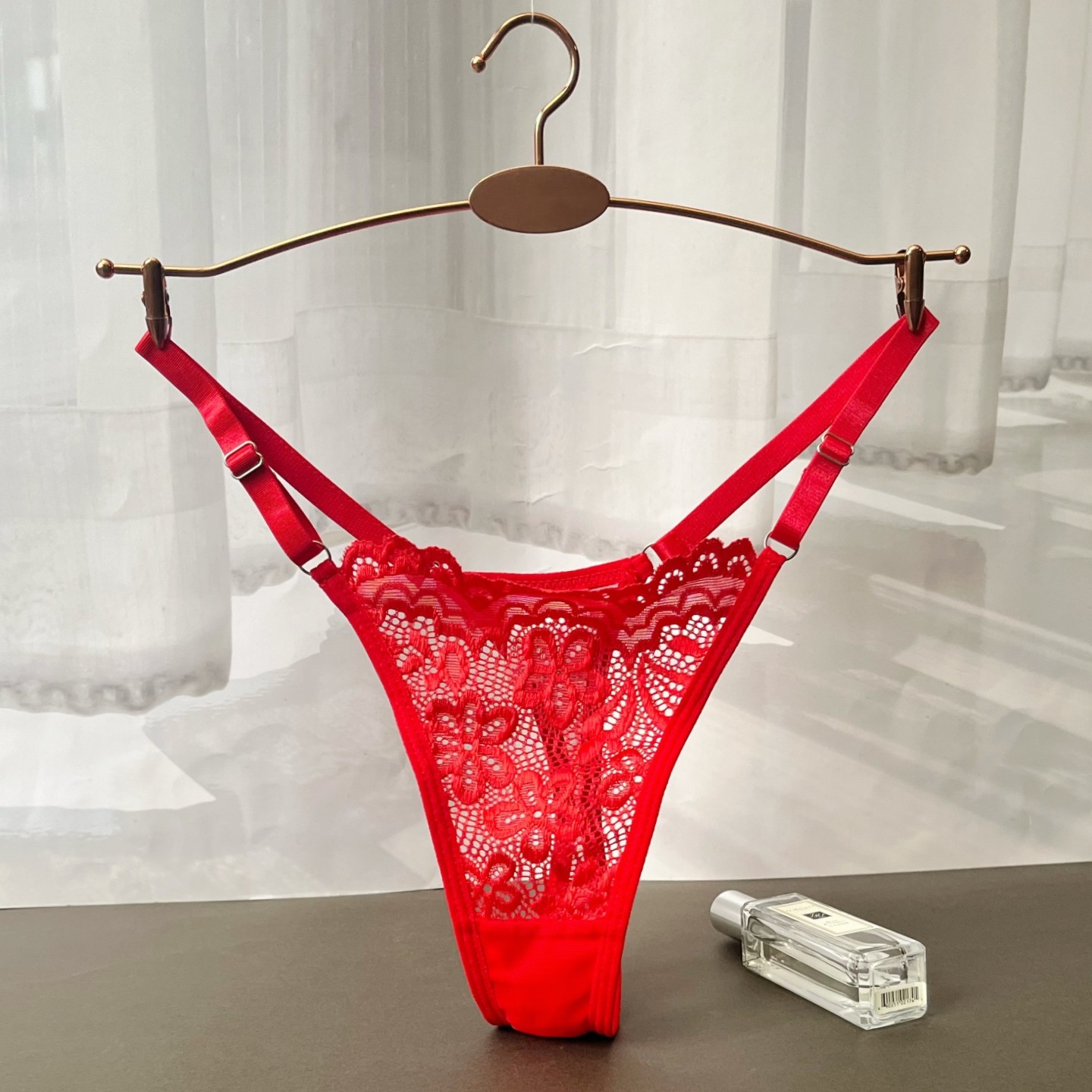 欧美性感蕾丝丁字裤女低腰镂空纯欲火辣情趣大码T裤 红色无痕内裤