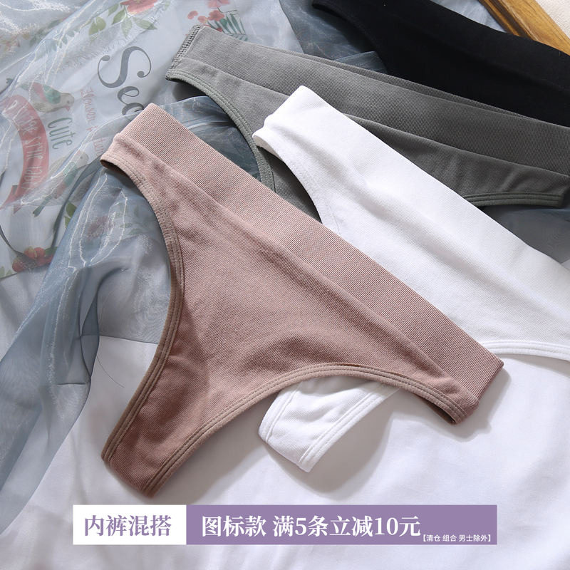 丁字裤女夏季纯欲隐形性感内裤一根线纯棉比基尼欧美无痕瑜伽T裤