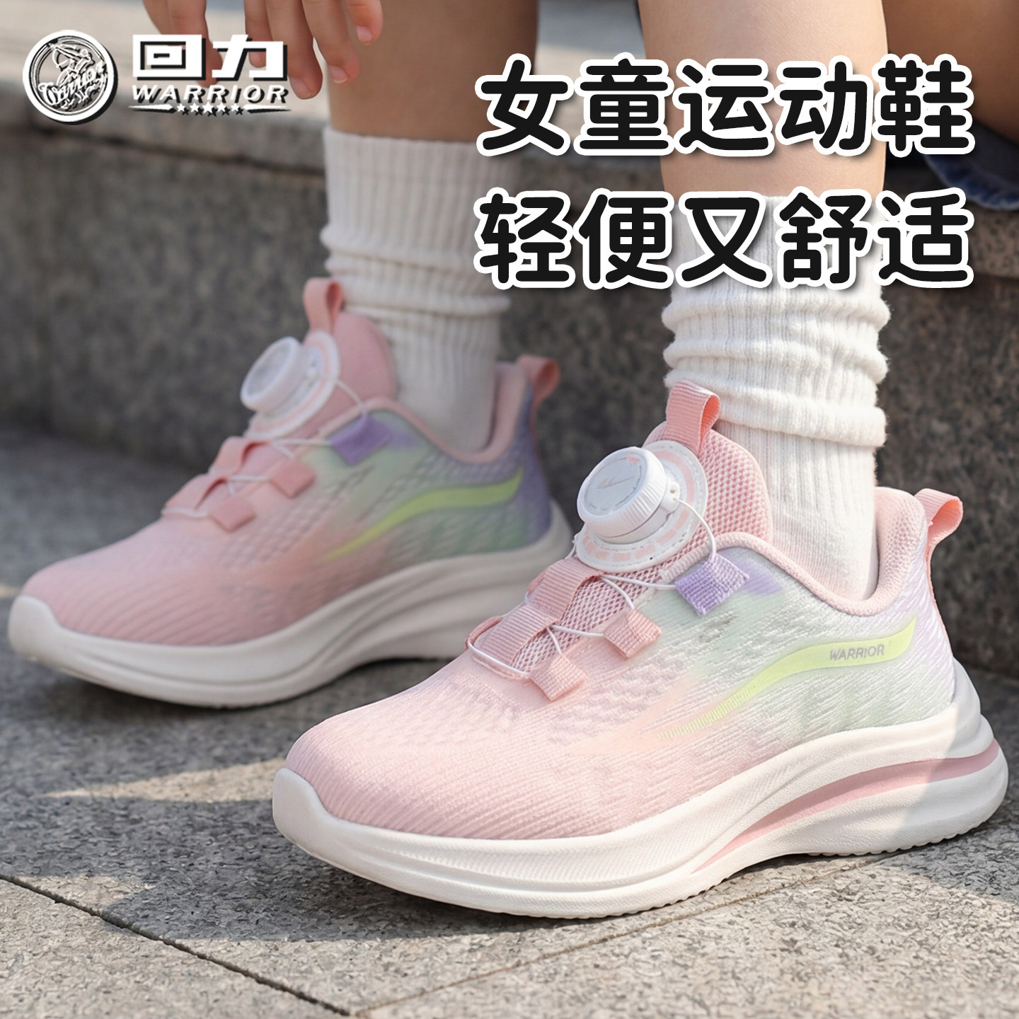 回力童鞋女童透气运动鞋2026春秋新款儿童旋钮旅游鞋女孩休闲跑鞋
