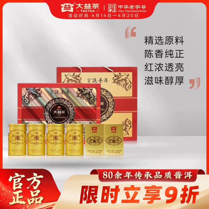 大益普洱茶 宫廷普洱熟茶高端礼盒300g茶叶礼盒送长辈送领导 正品