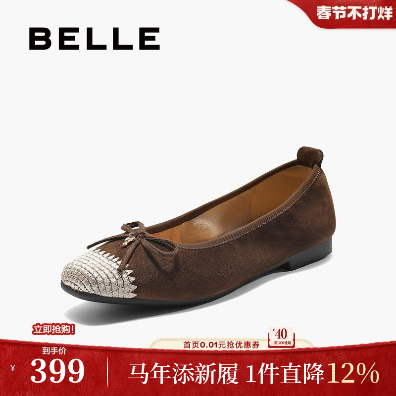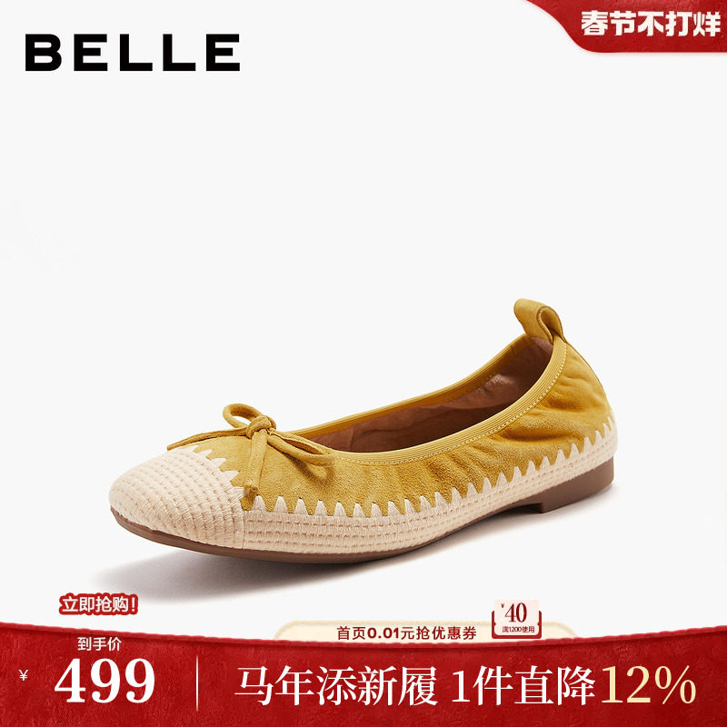 百丽编织平底单鞋女2026新款软底芭蕾蛋卷鞋浅口单鞋子B3039AQ6