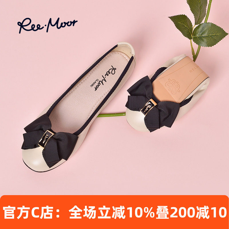 REEMOOR睿慕2025秋新款蝴蝶结平底鞋单鞋软底蛋卷鞋舒适百搭女鞋