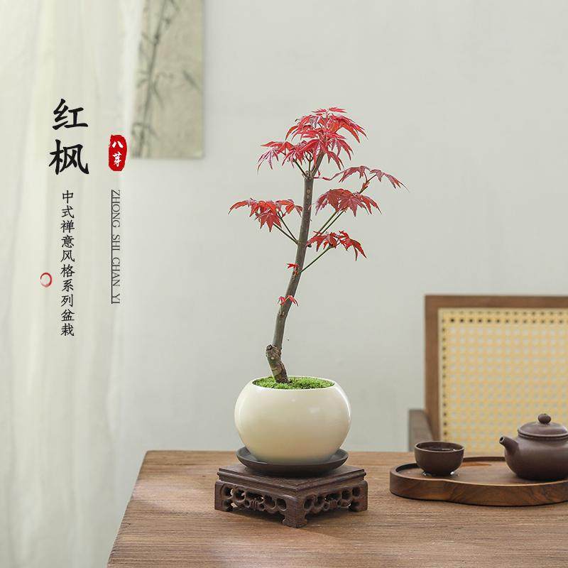 红枫树盆景中式摆件客厅书房桌面盆栽绿植物净化空气四季好养花卉