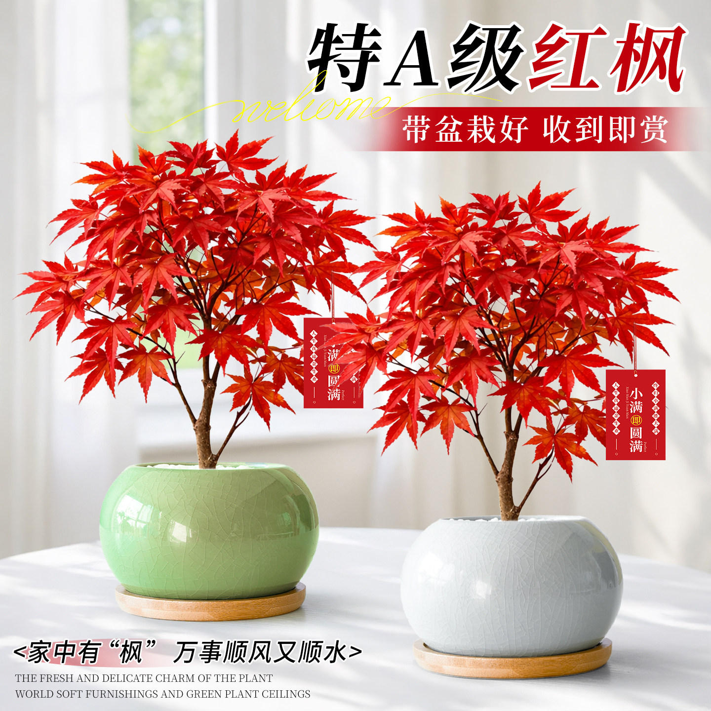 流泉枫盆栽绿植书房客厅室内植物盆景枫树网红日系禅意办公室枫叶
