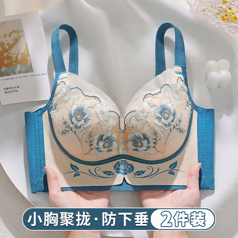 美容院轻奢绣花内衣女小胸聚拢调整型上托收副乳防下垂性感文胸罩