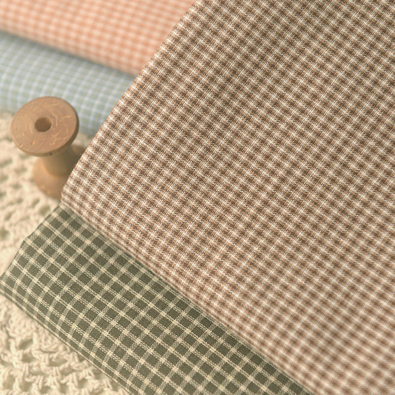 日系复古圣诞红米色格子涤棉麻布料简约衬衫衣服装连衣裙手工面料