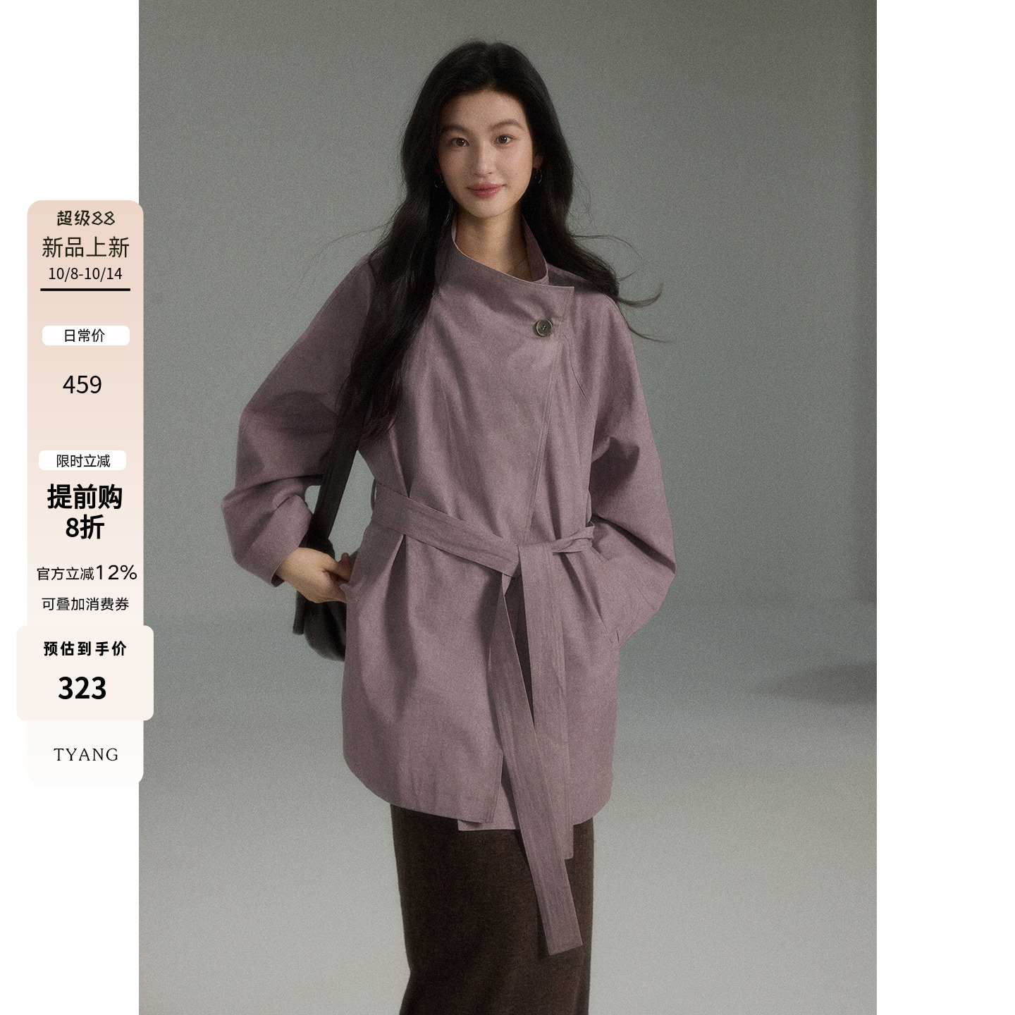 PEMPL·短款翻领系带风衣女小个子宽松设计感高级双排扣外套上衣