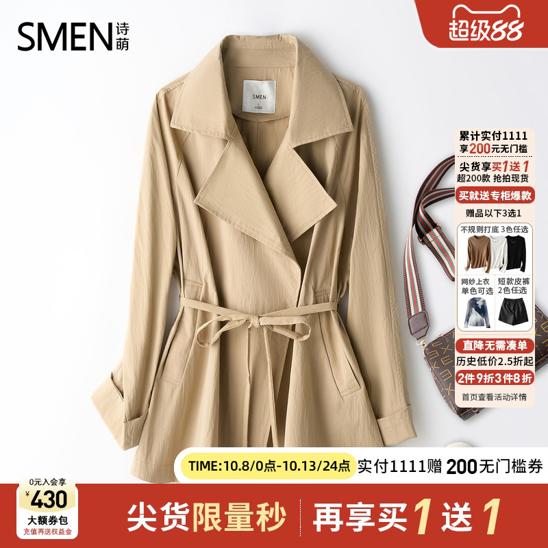 【商场同款】Smen诗萌短款宽松风衣外套女2025秋季新款时尚上衣