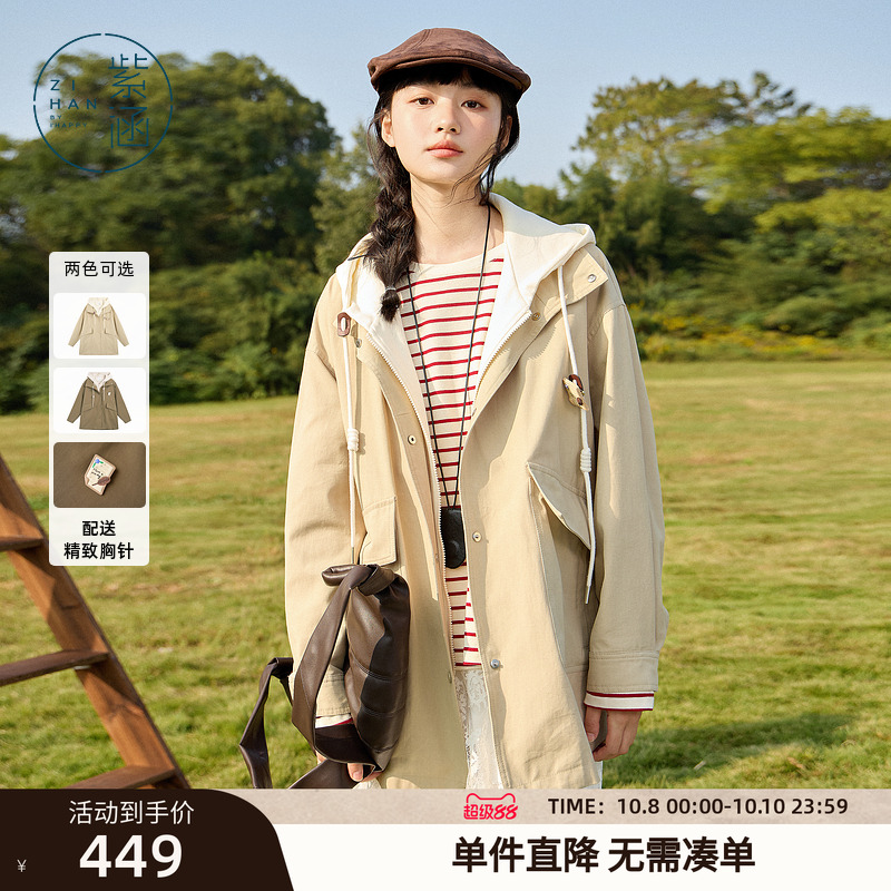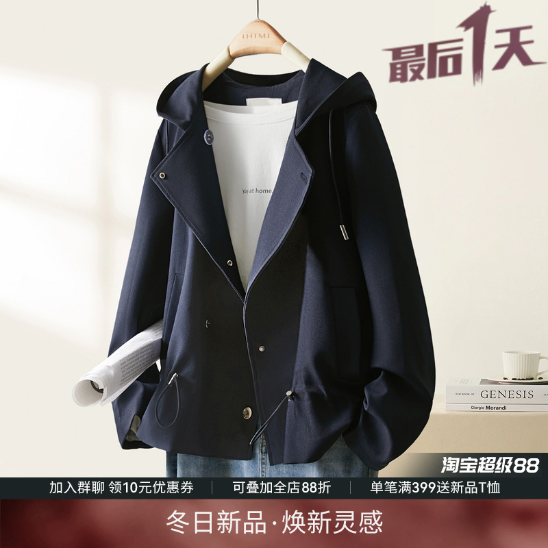 IHIMI海谧秋季连帽短款风衣女士2025春秋新款宽松今年流行外套女